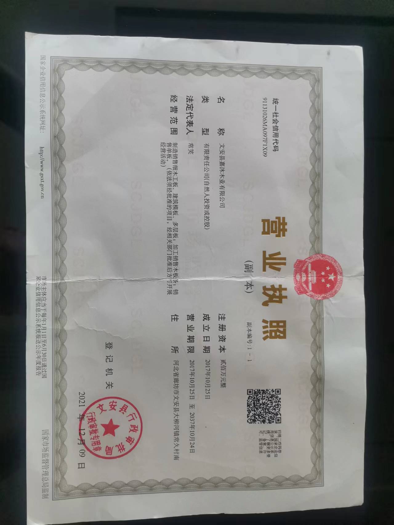 由于公司擴(kuò)大經(jīng)營(yíng),公司于2017年10月升級(jí)為文安縣嘉沐木業(yè)有 限公司,原廠(chǎng)名為:文安縣嘉興板廠(chǎng)。嘉沐木業(yè)主要生產(chǎn)楊楊木小 方生態(tài)板、木小軸C型槽細(xì)木工、楊木大軸梯型槽細(xì)木工等產(chǎn)品, 并可按客戶(hù)有求定做各種型號(hào)產(chǎn)品。